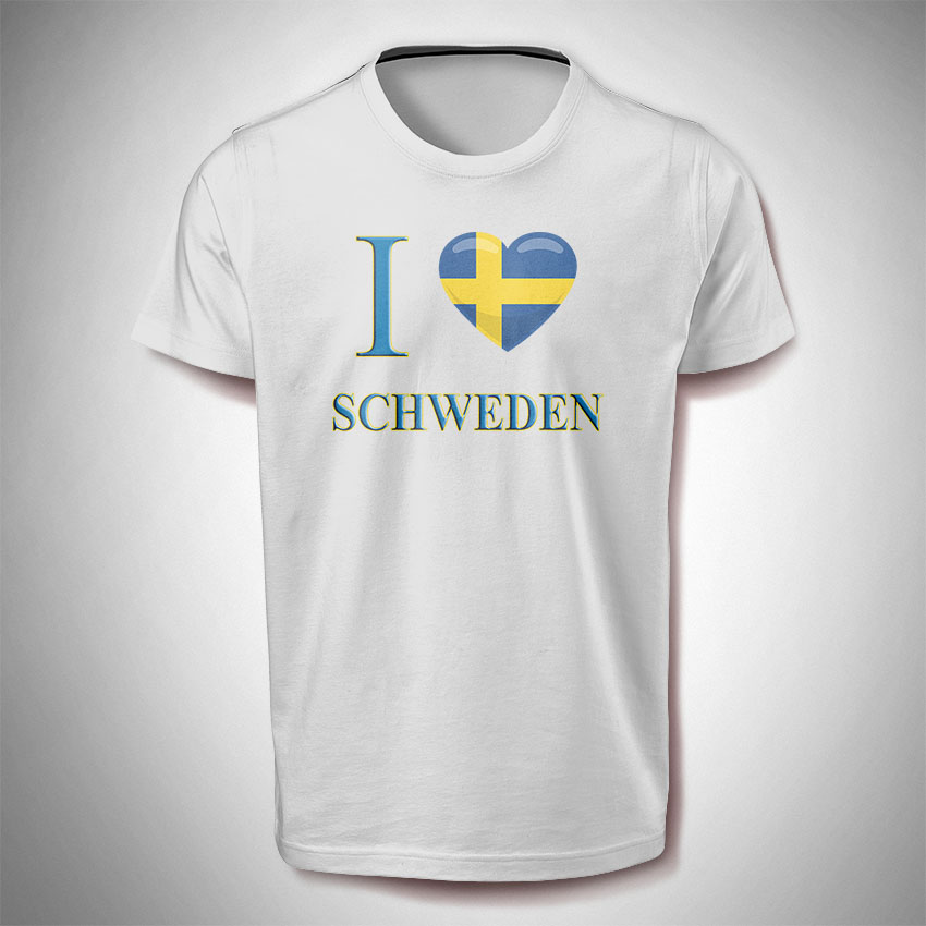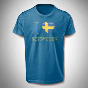 Dieses Shirt wird mit dem Motiv ‚I love SCHWEDEN‘ bedruckt und ist fĂĽr Frauen sowie fĂĽr Männer. Das Motiv hat eine Breite von ca. 30 cm und befindet sich im Brustbereich.