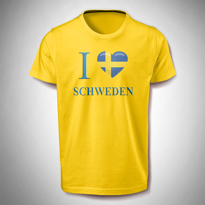 Unisex T-Shirt mit dem ‚I love SCHWEDEN‘ Motiv. Das Shirt besteht aus 100% Baumwolle.